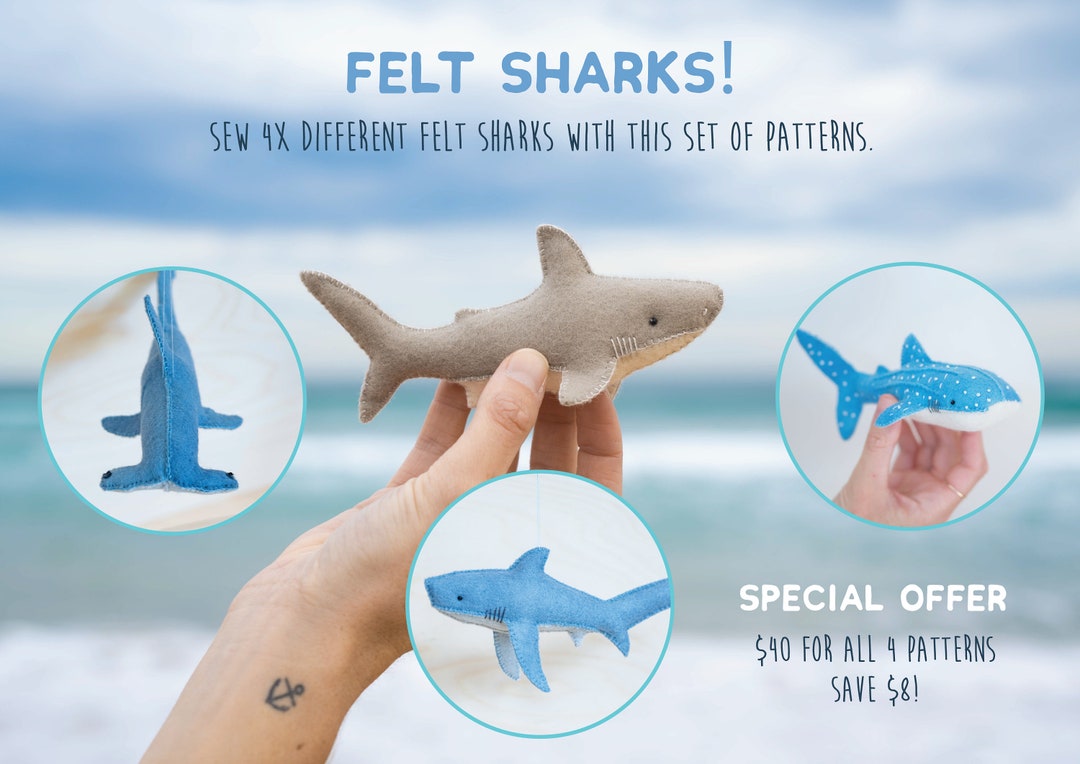 Felt Shark Sewing Pattern Pdfs Bundle 4x Sewing Patterns For Etsy Ireland